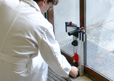 Mit einem nachrüstbaren Abus Sicherheitsschloss können wir Ihre bestehende automatische Schiebetür mit einem Schutz erweitern, der weit über gewöhnliche Bodenschlösser, Stangenverriegelungen oder Hakenriegelschlösser hinaus geht.